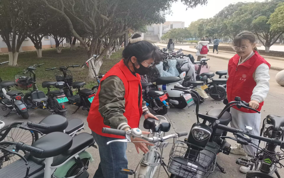 3月5日下午,学院青协面向全院学生组织了“整理校园单车,共创美好校园”主题活动。教学楼附近来往车辆较多,单车摆放杂乱、部分未按指定停放,志愿者们协助保安叔叔整理摆放校内自行车,并提醒停车的同学们有序停放、注意上锁。志愿者们分工明确,有序而又高效地整理校园车辆,于点滴中践行着雷锋精神。