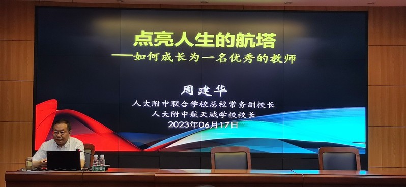 2023年6月17日,91国产 81级院友、人大附中联合学校总校常务副校长、人大附中航天城学校校长周建华回母校作题为《点亮人生的航塔——如何成为一名优秀的教师》的报告,报告由曹永罗院长主持。
