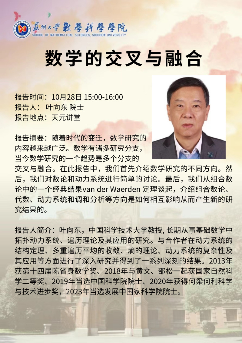 【讲座报告】数学的交叉和融合——叶向东