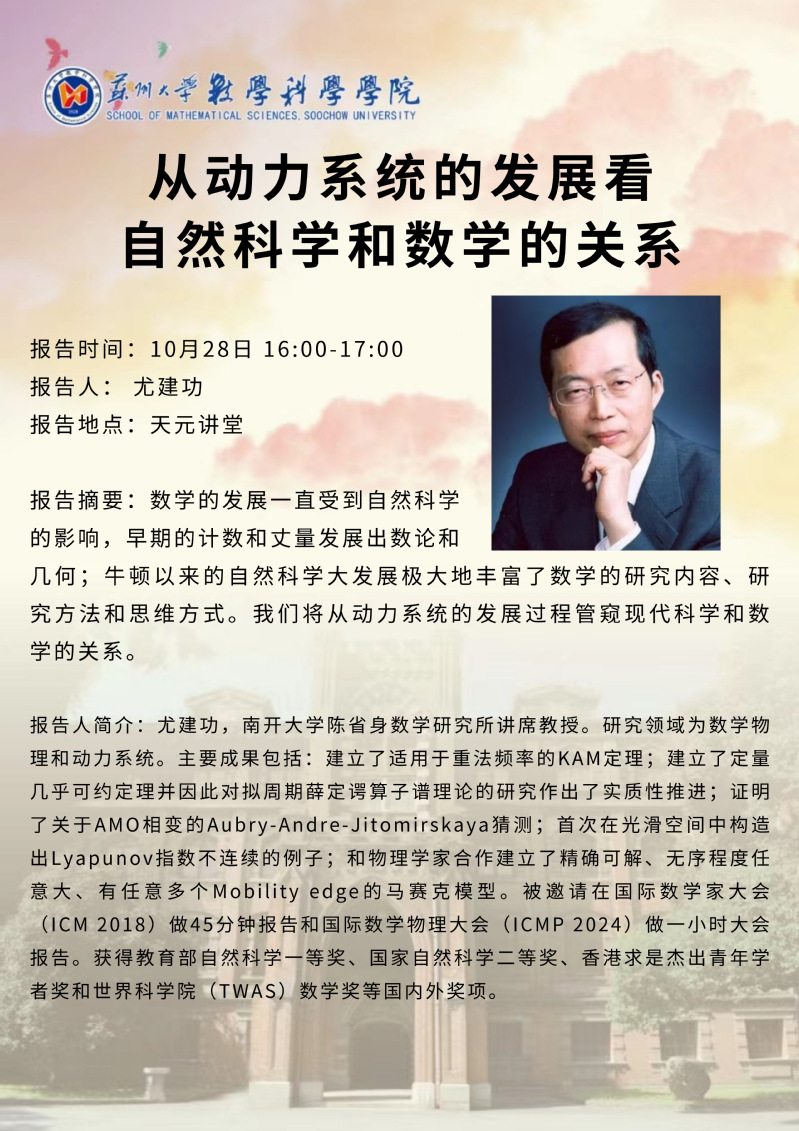 【讲座报告】从动力系统的发展看自然科学和数学的关系——尤建功