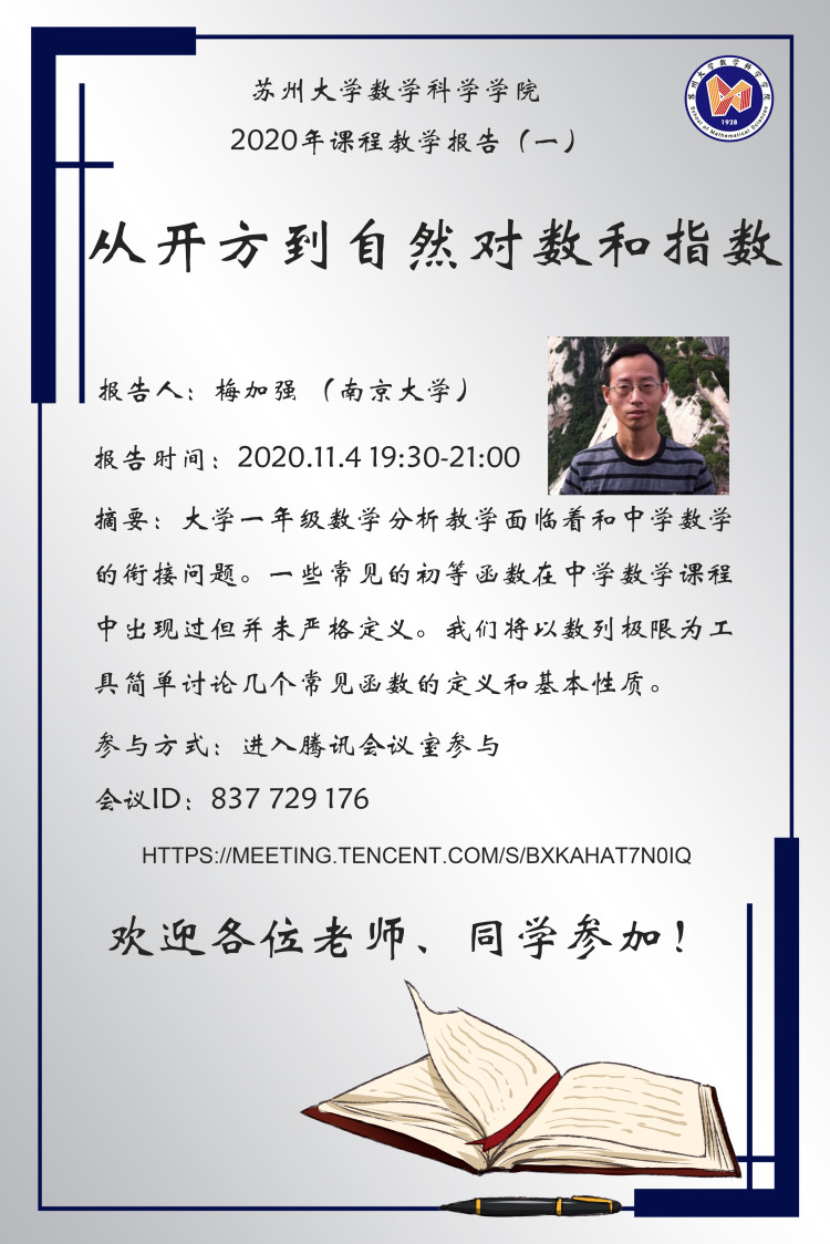 [课程教学]从平方数到自然对数和指数——梅加强(2020.11.4)