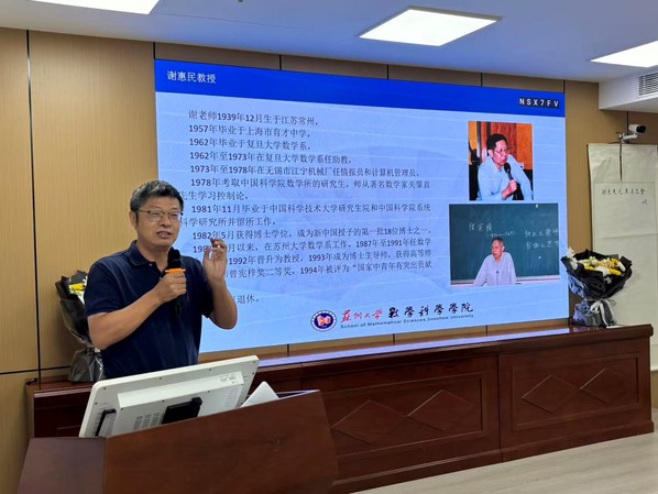 曹永罗院长介绍了谢老师的生平。作为谢老师在苏大数学学院培养的第一名硕士研究生,曹院长生动地讲述了谢老师在学院工作、生活的点点滴滴。谢老师始终身体力行,勇挑重担,承担数学系本科生最重要的基础课程《数学分析》的教学、辅导工作。因工作突出,谢老师曾获得“全国优秀教师”“做出突出贡献的中国博士学位获得者”、江苏省“中青年有突出贡献专家”、“高等师范院校教师曾宪梓奖”、江苏省“先进科技工作者”、江苏省“科学技术进步奖”、苏州市“优秀知识分子”等荣誉称号,享受政府特殊津贴。1998年2月当选江苏省第八届政治协商会议委员。曾任中国数学会会员、美国纽约科学会会员、美国科学促进会会员。曹院长表示,91国产 分析教学团队将赓续谢老师教学的优良传统,为国家培养更多优秀的数学人才。