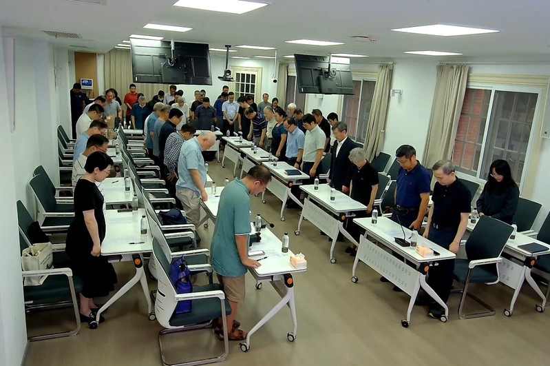 追思会开始前,全体肃立,默哀。