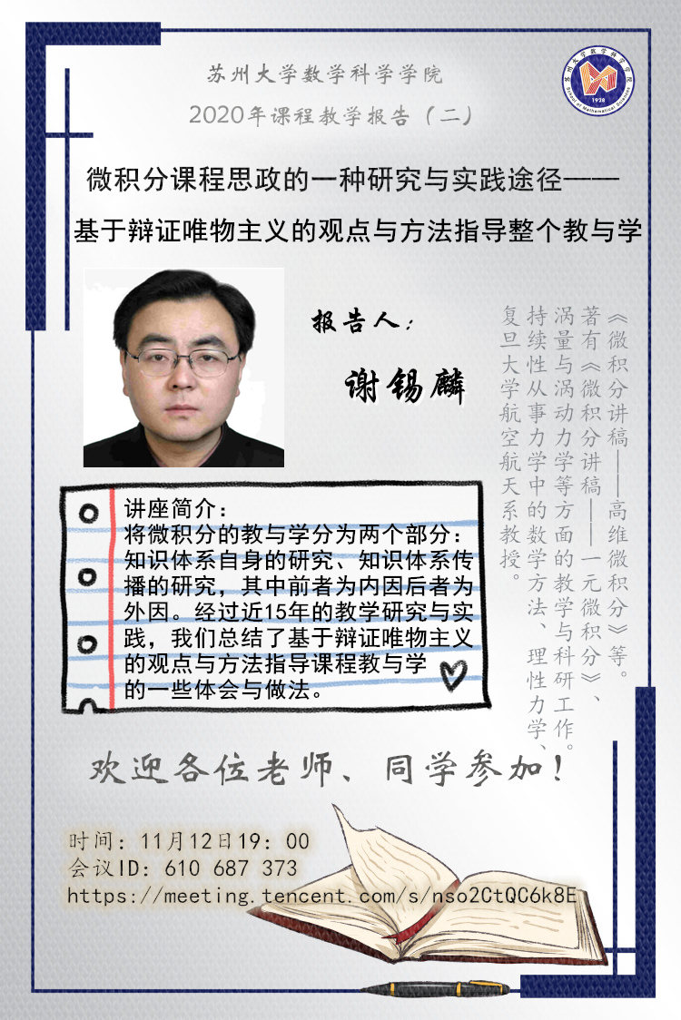 [课程教学]微积分课程思政的一种研究与实践途径——基于辩证唯物主义的观点和方法指导整个教与学-谢锡麟2020.11.12(复旦)