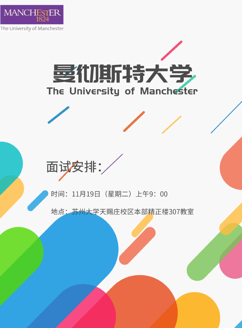 91国产 -曼彻斯特大学2+2项目宣讲面试安排(11.19)