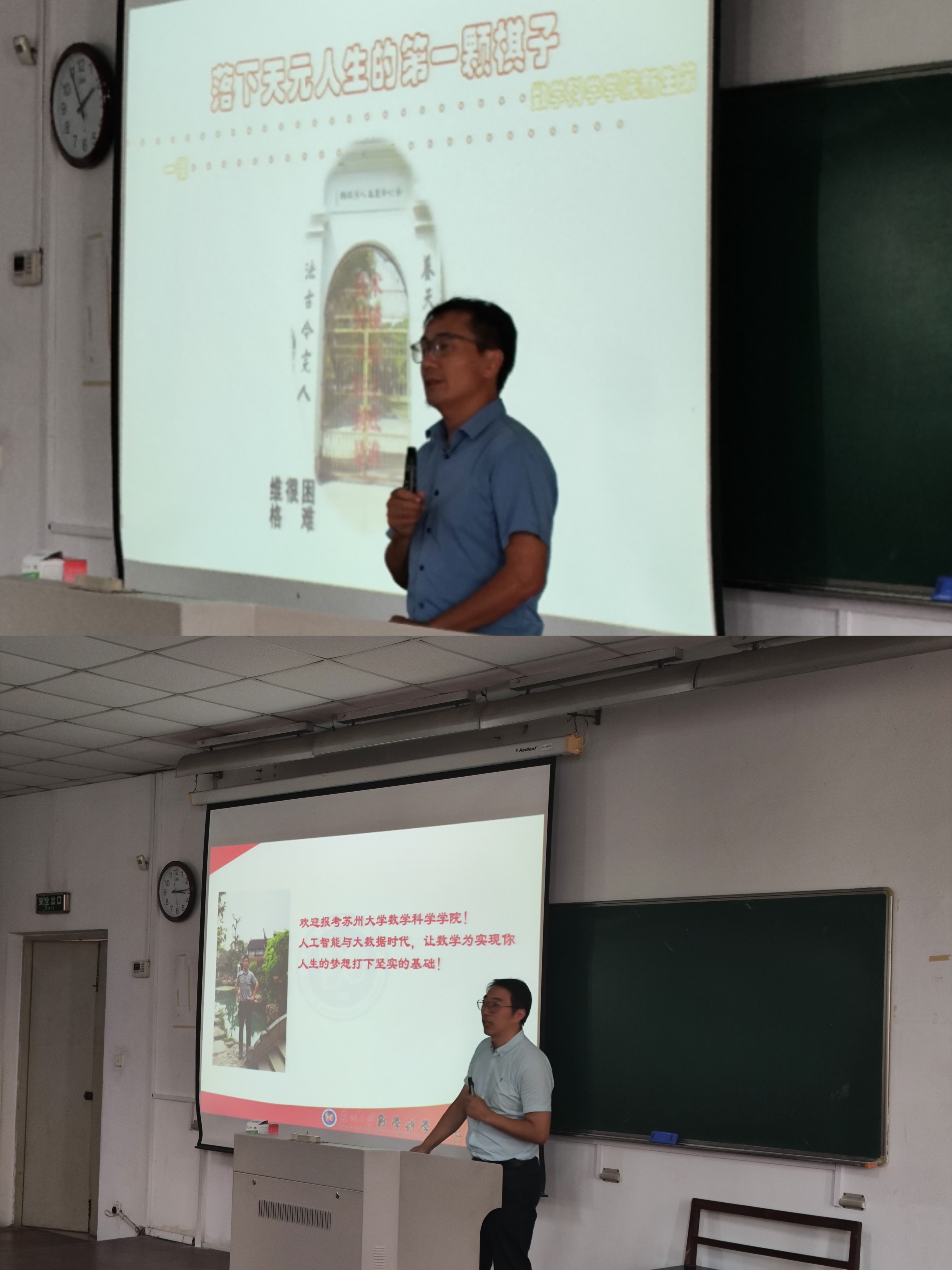 党委书记逢成华和党委组织委员乔治一起合作,以“落下天元人生的第一颗棋子”为主题,以黄金分割对书法艺术的影响为例,讲述了数学里的中国核心价值以及中国数学对世界的贡献,给研究生新生上了开学第一课。副院长王志国介绍了学院的悠久历史,雄厚的师资和突出的科研情况,解读学位点分布和学科建设以及学位培养方案,使研究生们对学院有了更深入的了解。