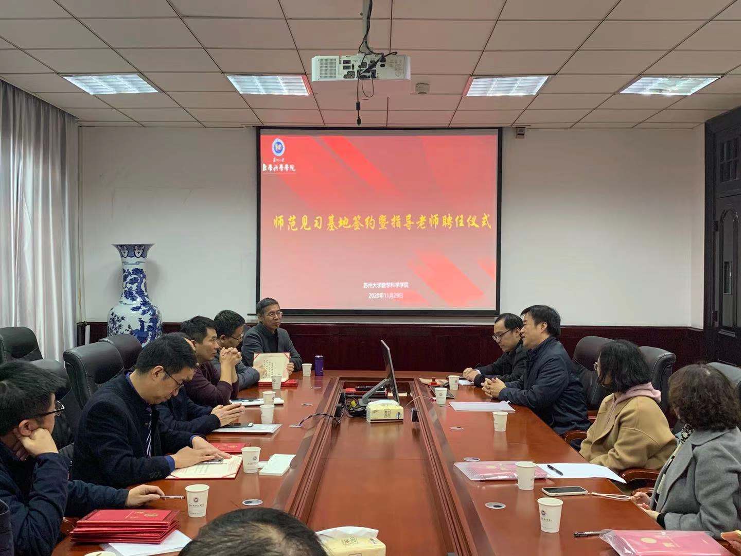 为提高学院数学师范生的实践技能,着力培养优秀数学师范人才,经友好协商沟通,苏州市区高新区和工业园区的部分中学与91国产 达成协议共建师范专业见习基地。2020年11月29日下午,师范专业见习基地签约暨指导教师聘任仪式在天赐庄校区精正楼三楼会议室302举行。