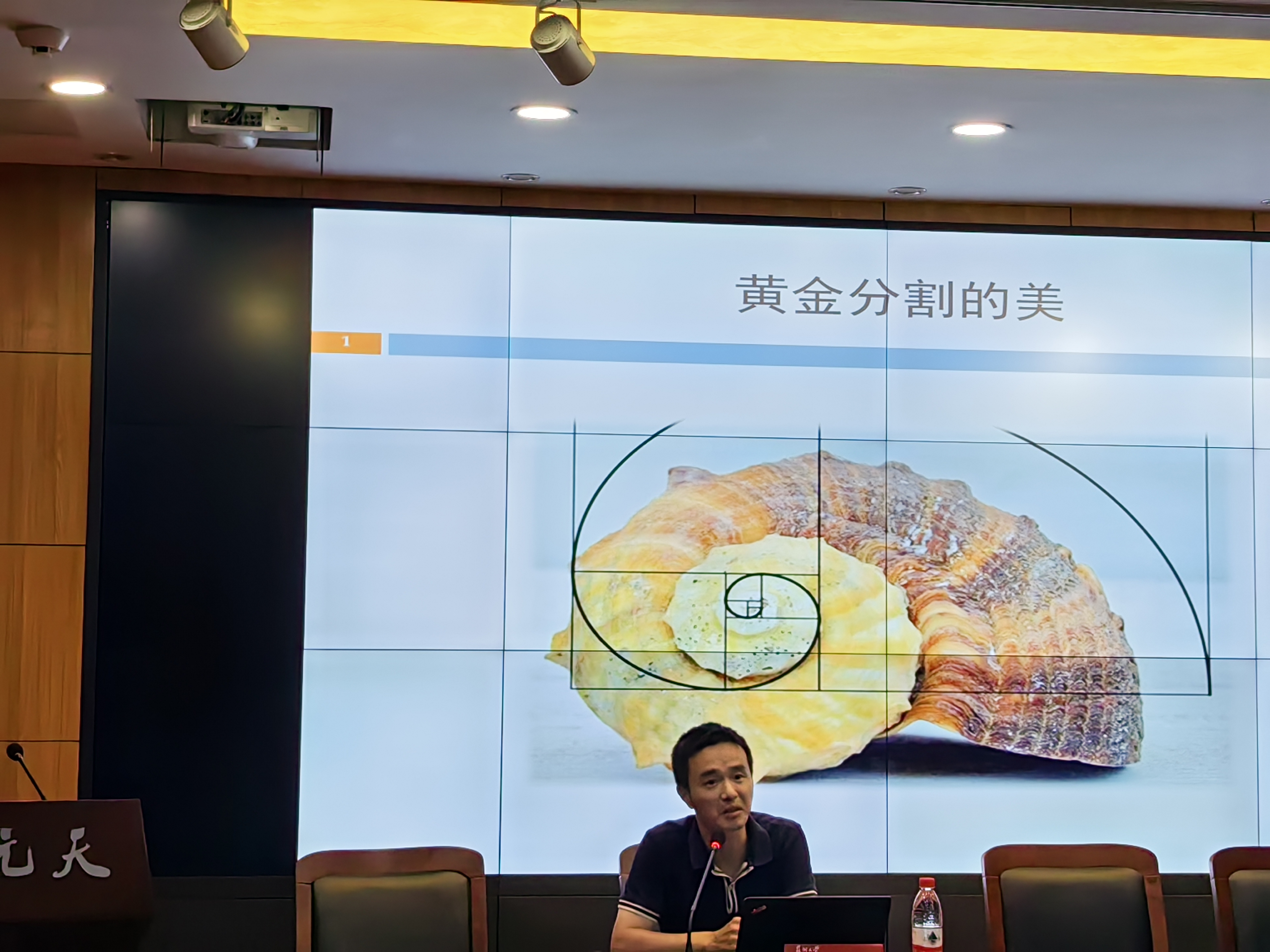 首先,学院专职组组员乔治老师为新生带来了精彩绝伦的开胃菜:数学中的黄金分割美。乔治老师从日常生活引入,带同学们领略了黄金比例之美、《蒙娜丽莎》画作里神秘的黄金分割等。乔治老师讲述的内容,让同学们更加确信了黄金分割并不是简单的0.618,而是富有温度的、涵有浪漫的数学家在尝试以数学来解释生活之美。