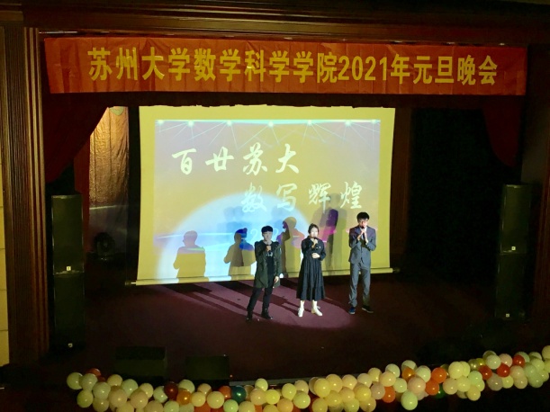 主持人开场回顾了苏大建校120年的辉煌诗篇,介绍了莅临现场的各位老师,并宣布元旦晚会正式开始。