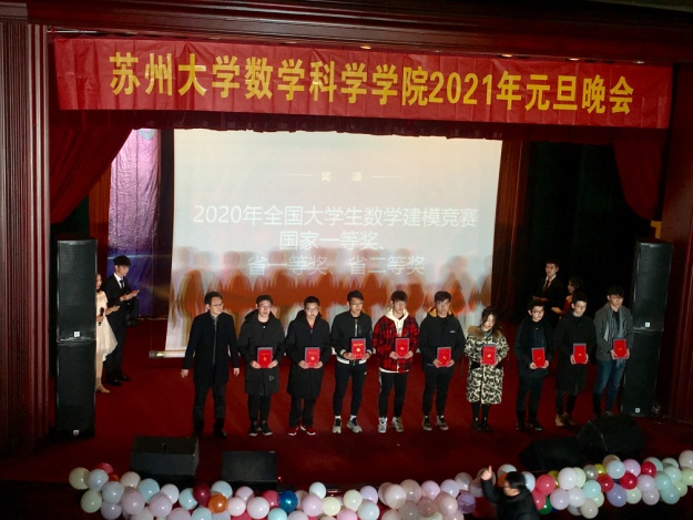 首先由学院党委书记逢成华老师致辞,他总结了艰难却依然交上抗疫辉煌成绩的2020年,同时也表达了对2021年的美好祝愿。随后进行了表彰大会,为数学建模、数学竞赛中取得优异成绩的本科生们颁发了荣誉证书。
