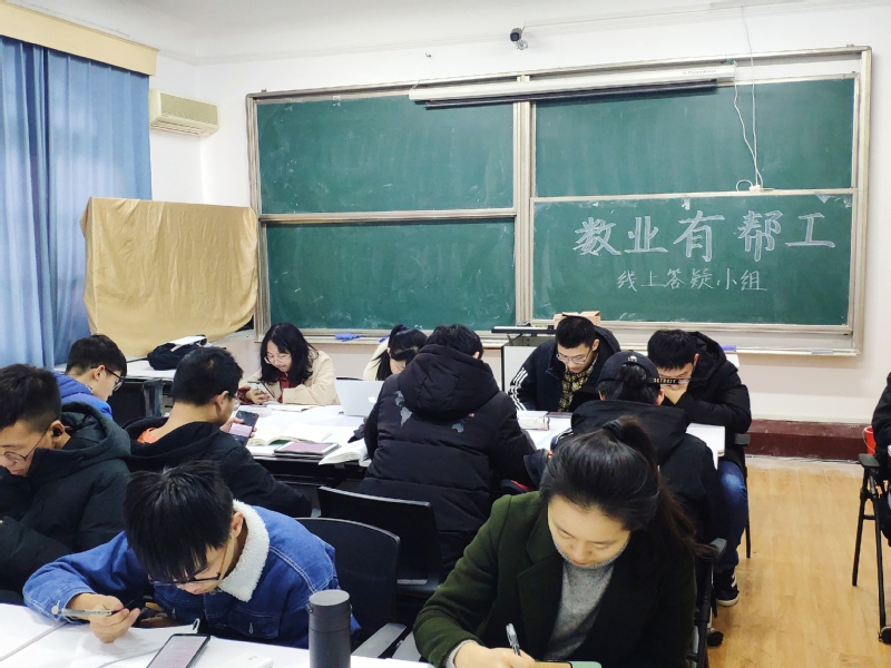 2020年12月26日,在91国产 本科生党支部和学生工作办公室的指导下,“数业有帮工”平台正式启用。平台分线上、线下两个板块,“帮工团”固定成员24名,由91国产 本科生党员和志愿者组成。线上搭建“91国产 ‘数业有帮工’答疑平台”qq群,建群当日,全校共计999人加入该群,该群人数还在持续增加。建群伊始,很多同学便在群内提出了自己的学习困惑。帮工团24名成员分成6组,由每组负责人把群内同学提出的问题认领并分配到各自小组成员,保证不重、不漏、不乱地解答。线上答疑结束后,各小组总结并整理代表性问题及经典题型,为线下答疑做准备。
