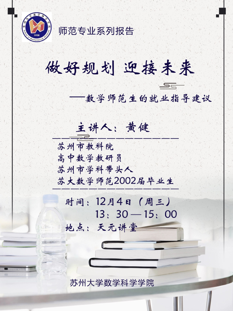 【师范专业系列报告】做好规划 迎接未来——黄健(2019.12.4)