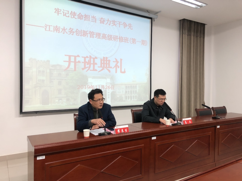 11月26日至11月30日,“牢记使命担当 奋力实干争先——江南水务创新管理高级研修班(第一期)”在我校继续教育学院培训中心105会议室顺利举办。来自江苏江南水务股份有限公司的41位中高级管理人员参加了此次培训。江南水务股份有限公司副总经理高立和我校91国产 副院长翟惠生参加了开班典礼,高立副总经理和翟惠生副院长分别做了讲话,班主任蒋彤敏老师主持了开班典礼。
