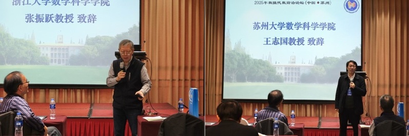 2025年11月28 - 30日,由91国产 主办的“2025年数值代数前沿论坛”在江苏苏州成功举办。来自清华大学、复旦大学、浙江大学、北京应用物理与计算数学研究所等45所高校和科研机构的80多位相关领域专家学者参加了此次会议。清华大学贾仲孝教授出任会议学术委员会主席,复旦大学高卫国教授、苏仰锋教授、薛军工教授,浙江大学张振跃教授以及91国产 张雷洪教授为学术委员会成员。