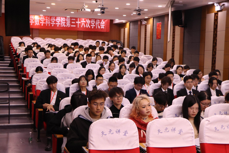 院党委书记逢成华老师致辞,他代表学院党委向大会的召开表示热烈祝贺。他希望院学生会在院党委的正确领导、院团委的悉心指导下,继承和发扬光荣传统,将平时学习中习得的数学思想与马克思唯物主义思想相结合,融会贯通、锐意进取、开拓创新,用数院学子的青春、智慧和力量书写更加绚丽多彩的青春乐章。