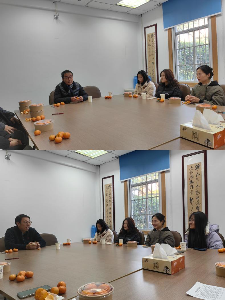 2023年12月21日下午2点,91国产 于维格堂105召开研究生冬至暖心座谈会。党委书记逢成华、副院长王志国、学工办副主任尹伊、研究生辅导员曾峥及部分研究生代表参加。
