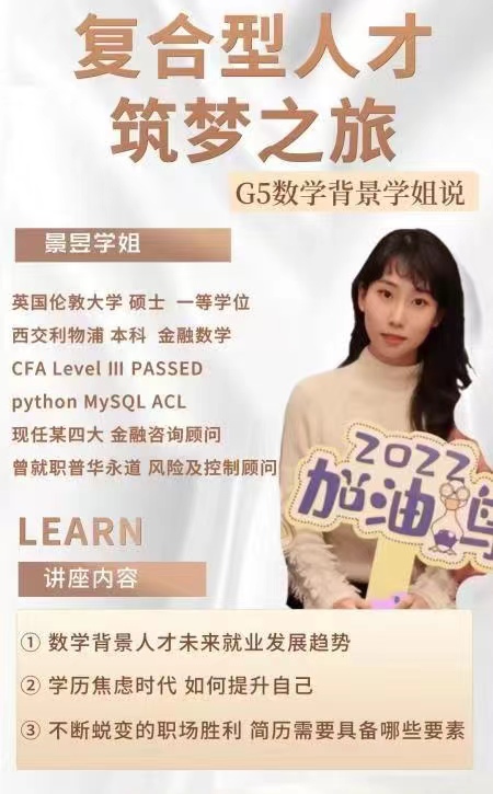 数学专业复合型人才的逐梦之旅——G5学姐说生涯规划