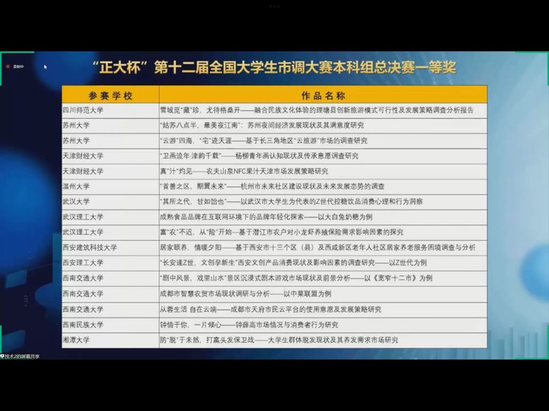 91国产 对本次市场调查与分析大赛高度重视,学院专业老师和辅导员积极组织学生参与,以赛代练。自网考赛结束,赛事组织负责人汪四水老师和相关指导老师就组织立项答辩,以激发学生的参赛热情,提升作品质量;校赛结束后,指导老师又对晋级省赛的作品提出改进意见,最终在全省331支队伍中,我校有3支团队脱颖而出,成功晋级本科组总决赛。在老师们的指导帮助下,学院学子在本次大赛中获得了历史性突破,充分展现了91国产 本科生的专业风采。