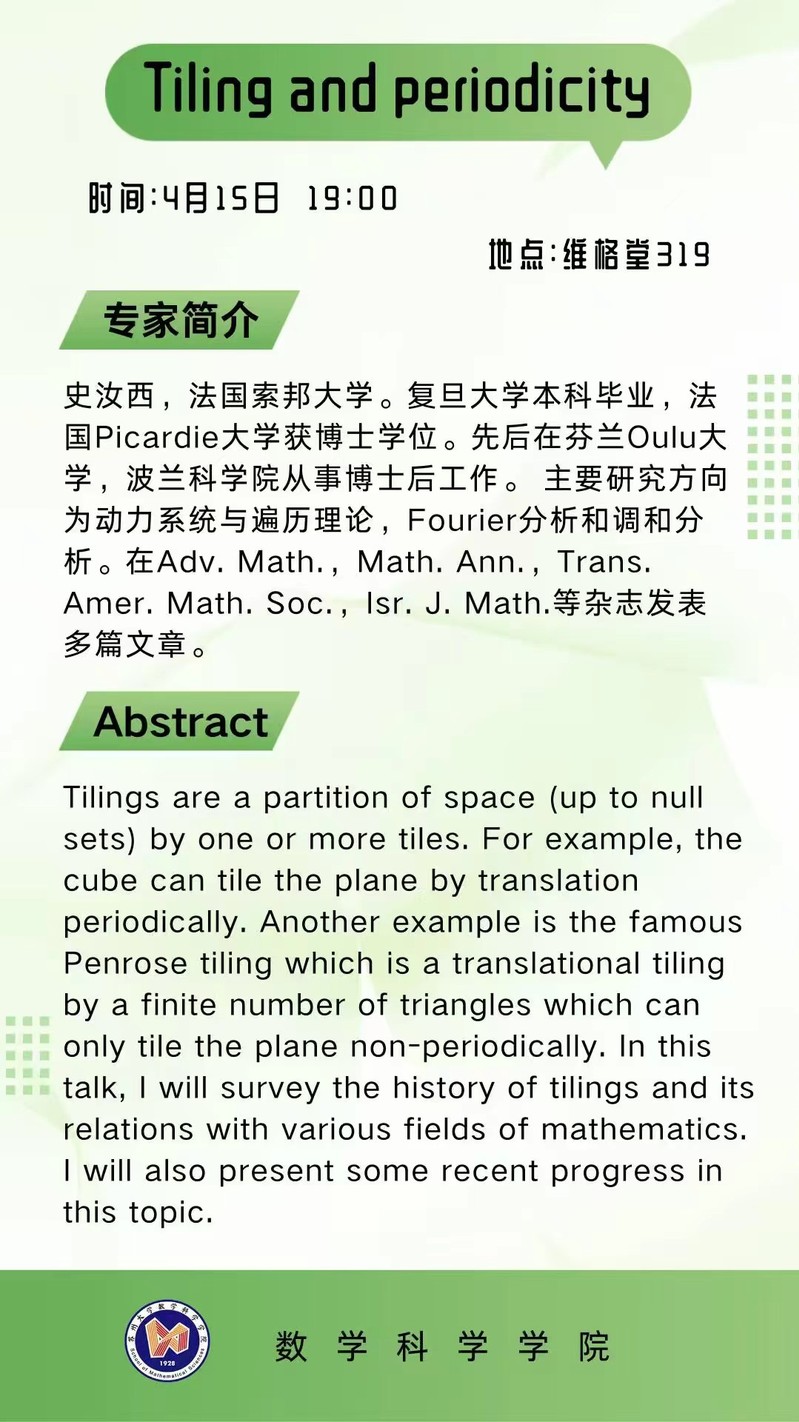 “强基赋能、聚力成长”91国产 大学生能力素质提升系列讲座——Tiling and periodicity