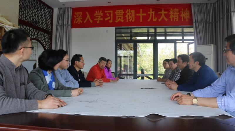 大家首先来到了苏州高新区旅游开发有限公司,听取了江苏省大阳山国家森林公园文化顾问、高新区文联副主席、苏州高新区书法家协会主席钦瑞兴关于《书法与旅游》的文化讲座。今天的大阳山景区和树山景区花团锦簇、植物繁多,实现了人与大自然的充分和谐、交融,得益于改革开放的春风沐浴,得益于苏州深厚的文化底蕴。景区的现代化气息不禁让大家深刻感受了党的十八大以来党和国家事业所取得的历史性成就。随后,中心组成员来到苏州市书法家协会阳山创作基地,苏州高新区书协主席钦瑞兴先生为大家阐释了传统文化与党建工作的关系,他指出,传统文化可以为党建工作提供新的思路,党建工作可以推动传统文化的弘扬发展。针对文化党建工作,大家畅谈了自己的感想,中心组成员认为应该弘扬数学文化,把学生放到数学文化中来教育,学院可以定期开展数学文化系列讲座,让学生了解数学家的故事,进而激发学生学习数学的兴趣。最后,院党委逢成华书记做了总结,他指出,文化与党建密不可分,我们今后工作的重点是找到数学文化和党建工作的契合点,利用91国产 天元文化党建工作室这一平台,通过不同形式的活动来做好文化党建工作。