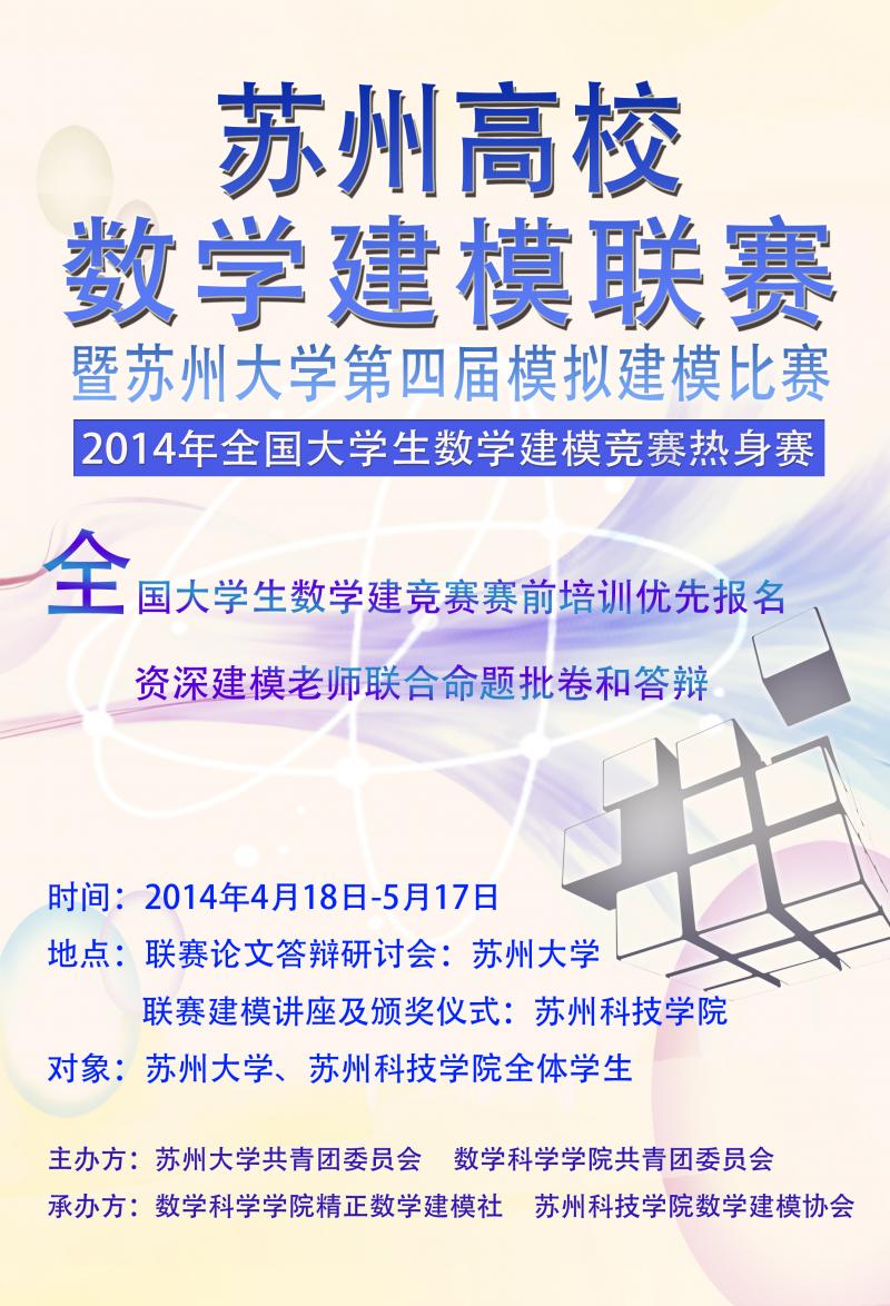 和苏州科技学院联合举办苏州高校数学建模联赛,给大学生提供更多的锻炼平台和参赛机会,以此鼓励广大学生踊跃参加课外科技活动,开拓知识面,培养创造精神及合作意识。