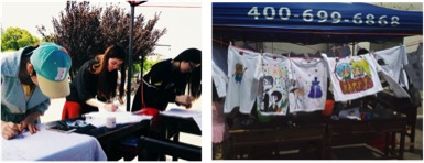 创意T恤设计大赛活动现场,有专门的同学负责介绍参与的具体规则并登记参赛同学的信息,也有同学负责在设计过程中给予帮助。活动过程中,有许多同学积极参与,充分发挥出她们的创意和特长,让活动办得如火如荼。当然,也有很多同学被展示的创意T恤吸引并投上了宝贵的一票,并给我们送来了赞许。