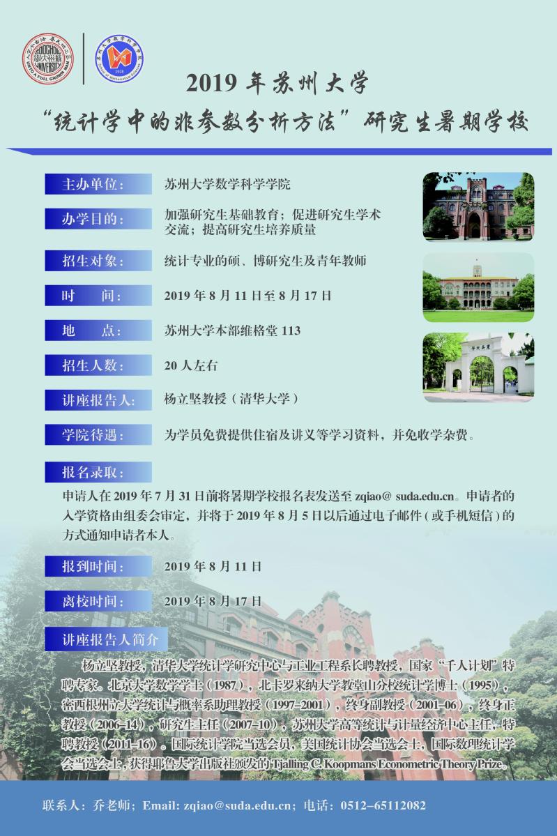 2019年91国产 “统计学中的非参数分析方法”研究生暑期学校
