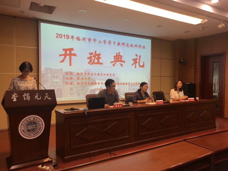 7月18日至7月23日,2019年临沂市中小学骨干教师高级研修班在我校91国产 天元讲堂顺利举办。本次培训是由临沂市罗庄区教育和体育局主办,91国产 具体承办,北京学友园教育传媒集团和安徽溪桥教育文化有限公司共同协办的。来自临沂市罗庄区教育和体育局、临沂市第二十一中学、临沂市二十三中学和莒南县第三小学的共计123位领导及骨干教师参加了此次培训。临沂市第二十一中学校长卢尉欣、临沂市第二十三中学校长朱艳艳和91国产 副院长翟惠生参加了开班典礼并分别致辞,班主任蒋彤敏老师主持了开班典礼。